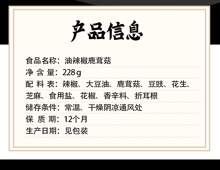 油辣椒鹿茸菇228g Mon, 27 Oct 2025 18:18:18 +0800